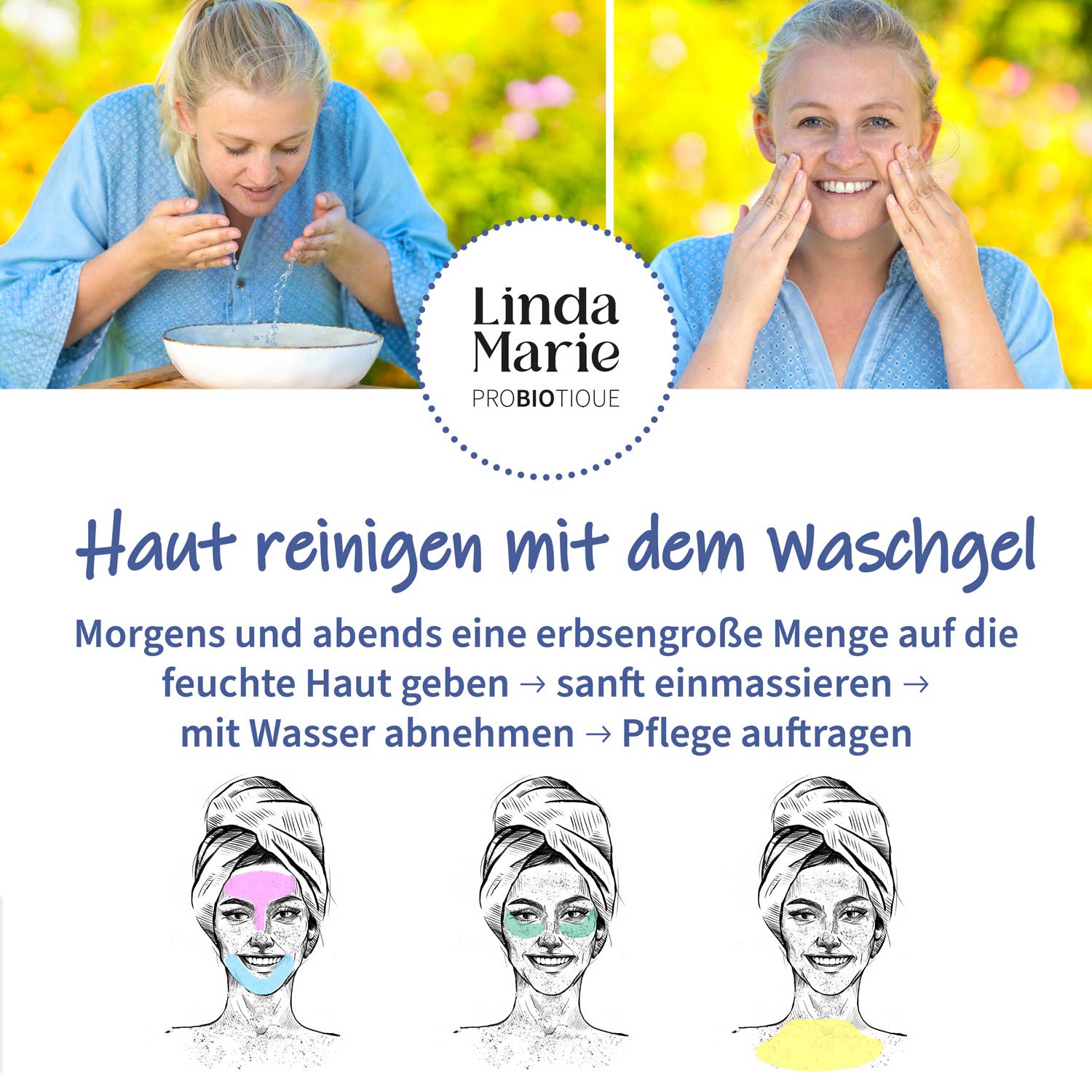 Wie wendest du das Linda Marie Waschgel an?